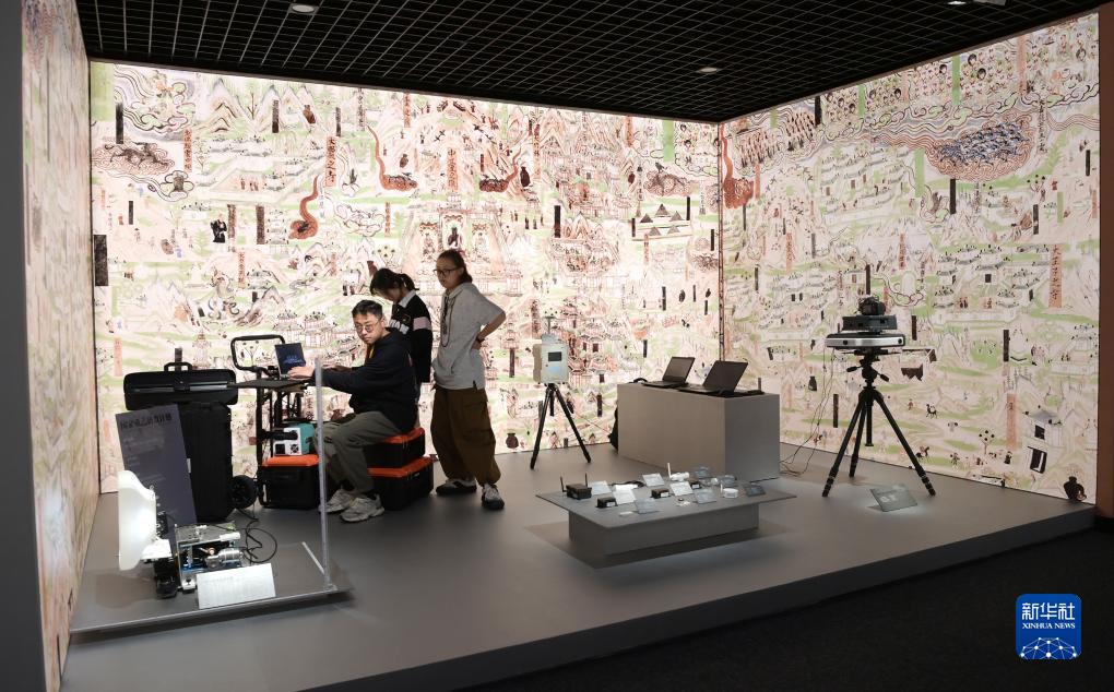 9月27日,工作人员在展厅演示狭小空间文物壁画监测装置。