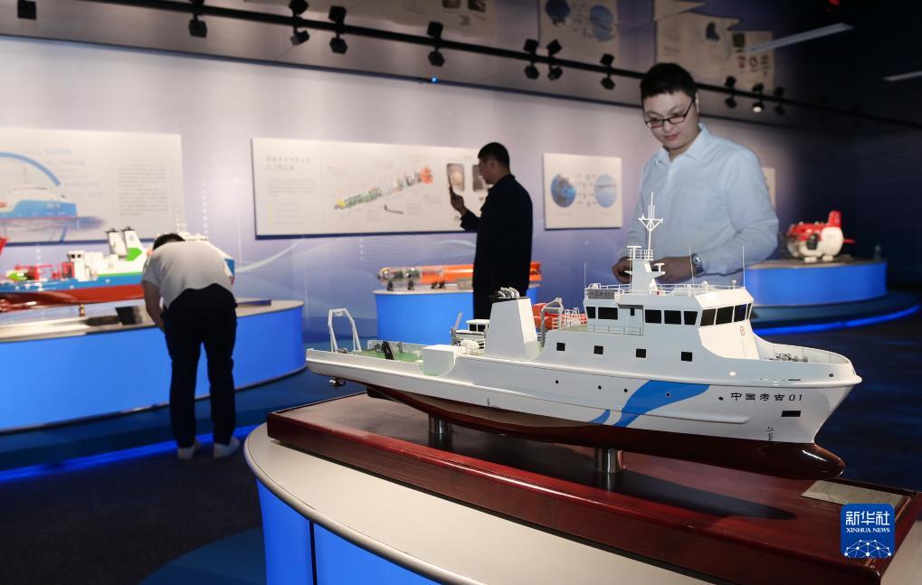 9月27日,观众在展厅参观供海洋考古使用的船只模型。