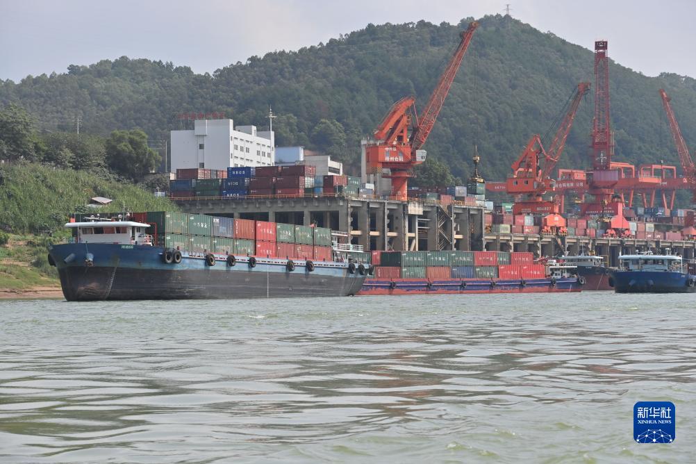 9月27日,船舶在广西梧州李家庄码头装卸货物。