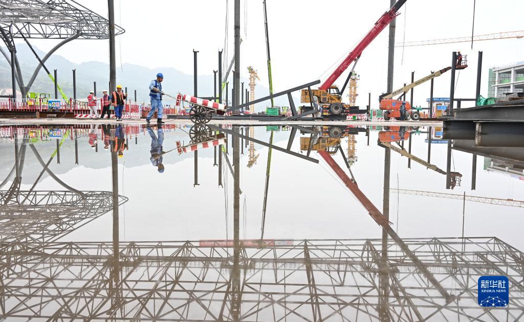 9月27日,中铁建工工人在重庆东站站房及配套综合交通枢纽工程二标段项目作业。