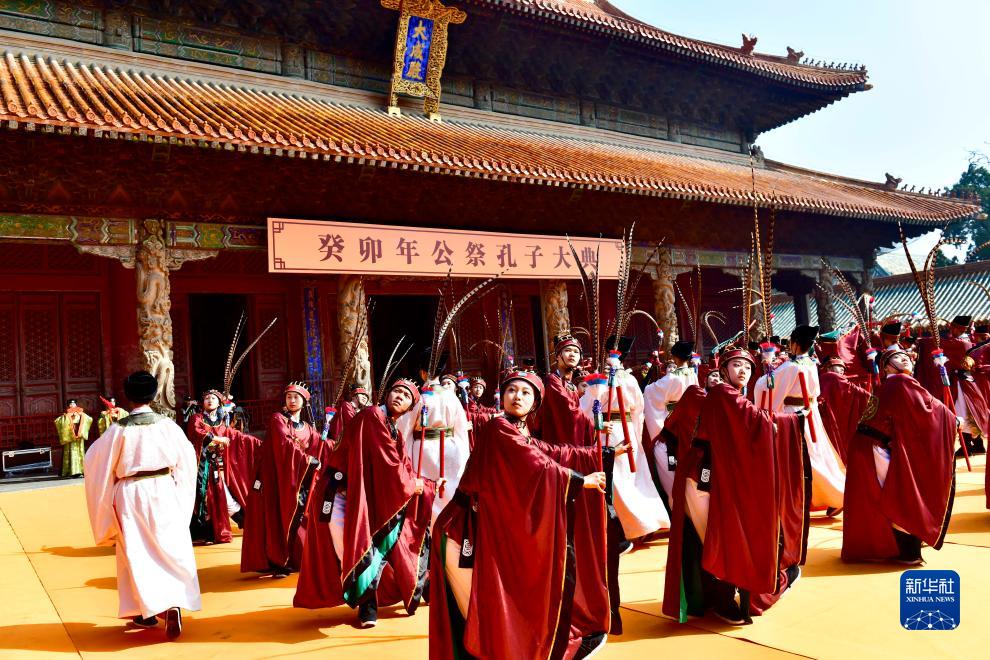 9月28日,在中国(曲阜)国际孔子文化节·癸卯年祭孔大典上,演员起舞乐奏。