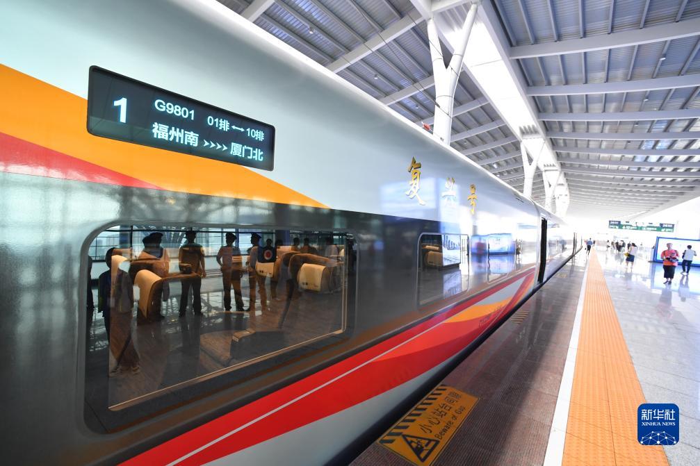 9月28日上午9时15分,福厦高铁首趟复兴号智能动车组G9801次列车从福州南站缓缓开出,一路南下,奔向厦门北站。这标志着中国首条时速350公里跨海高铁——福厦高铁正式开通运营。福厦高铁北起福州,途经莆田、泉州,南至厦门和漳州,全长277公里。开通后,福州至厦门的列车运行时间将从现在的2小时左右缩短至1小时以内,两地间形成“一小时生活圈”。