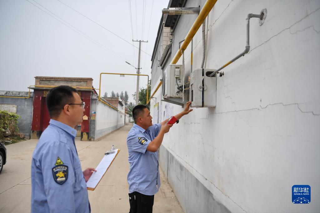 9月27日,工作人员在遭受洪水影响的河北保定高碑店市潘家营村查验燃气设备运行情况。