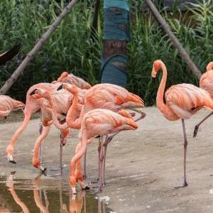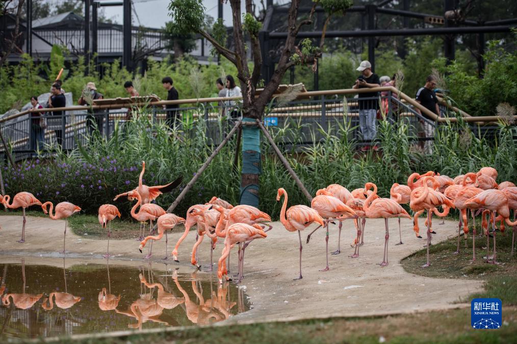 9月28日,游客在武汉动物园观看大红鹳。