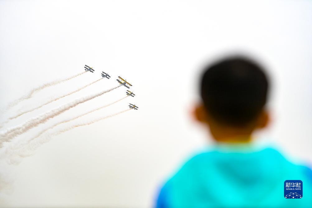 9月28日,特技飞行表演队在2023太原国际通用航空博览会上表演。