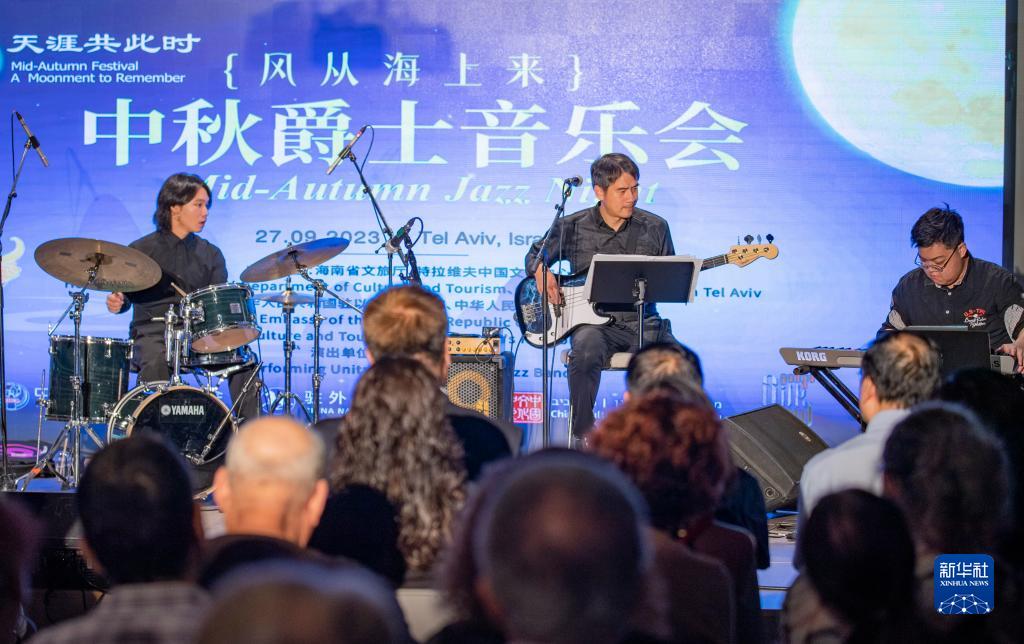 9月27日,在以色列特拉维夫中国文化中心举办的中秋主题活动上,中国音乐家演奏中秋主题音乐。