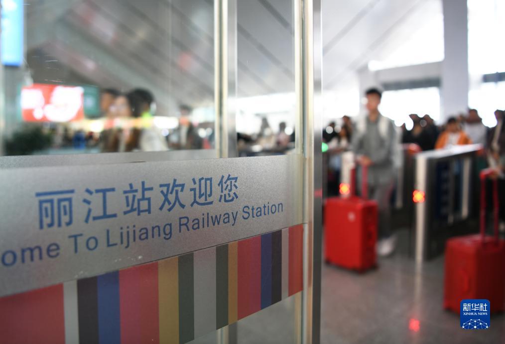 9月28日,旅客在云南丽江火车站通过闸机进站乘车。