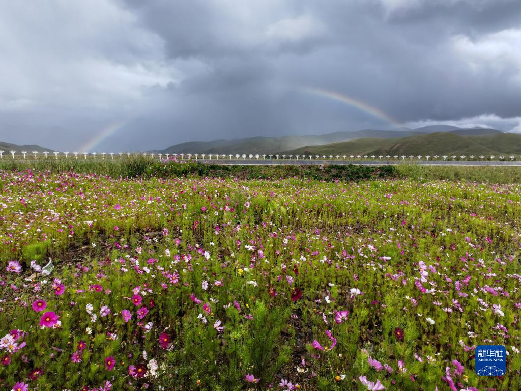 彩虹横跨圆环阵太阳射电成像望远镜(2023年8月27日摄)。
