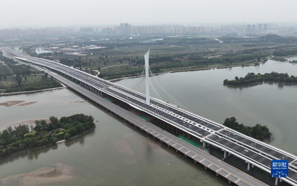 这是9月28日拍摄的石家庄滹沱河特大桥(无人机照片)。