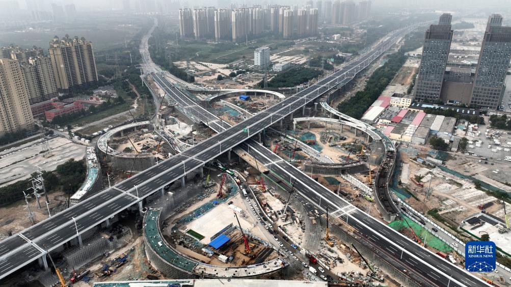 这是9月28日拍摄的河北省石家庄市北三环市政化改造项目体育大街互通立交(无人机照片)。