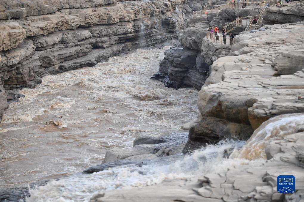 眼下,黄河壶口瀑布正值秋季最佳观赏期,众多游客前来游览。