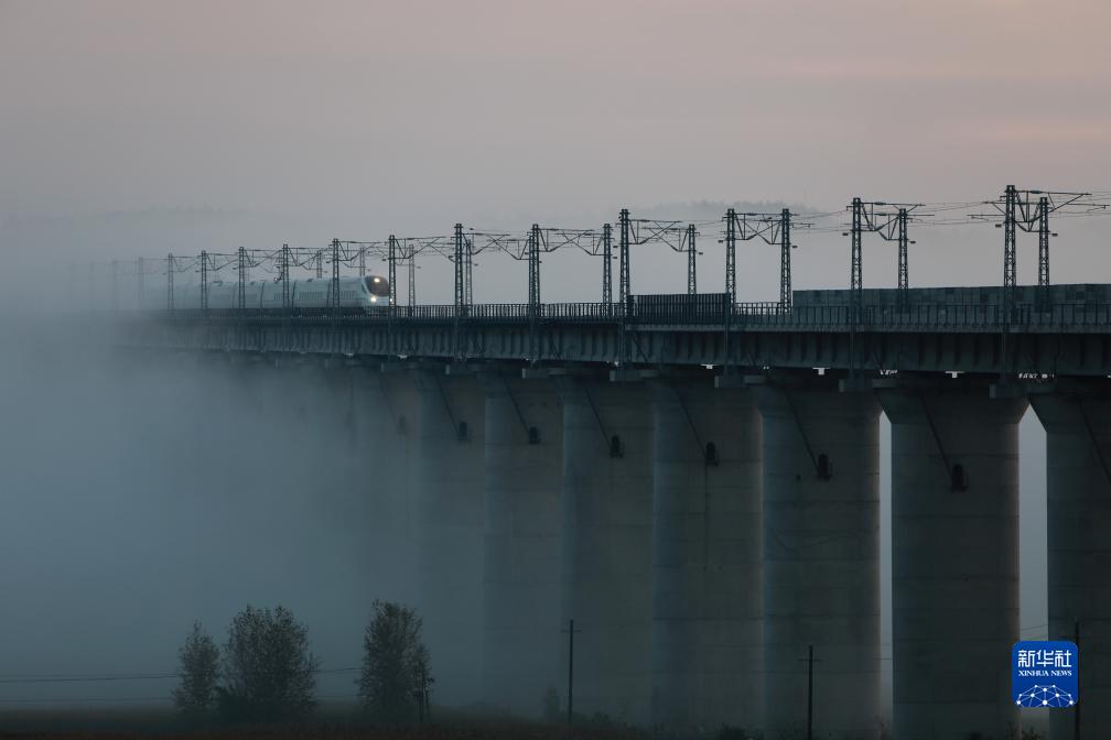 9月27日清晨,一列动车组列车行驶在哈佳铁路佳木斯站至依兰站区间。