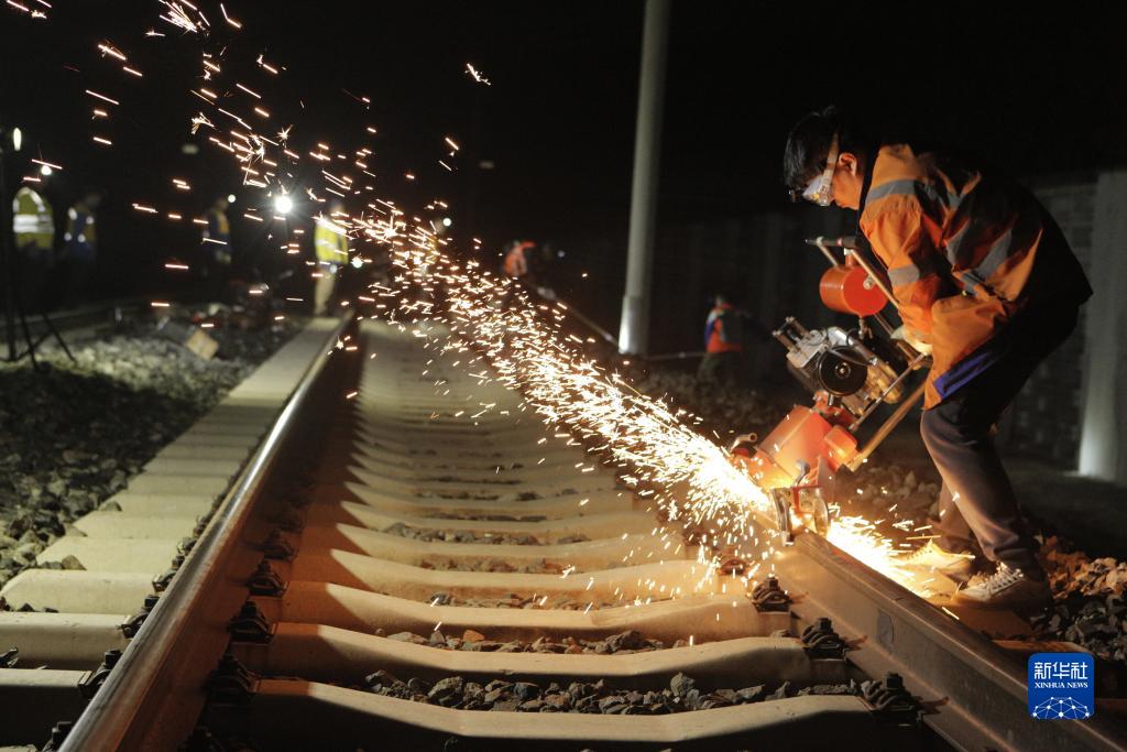 9月27日凌晨,铁路工人在佳木斯工务段西佳木斯线路车间依兰线路工区进行维修施工作业。