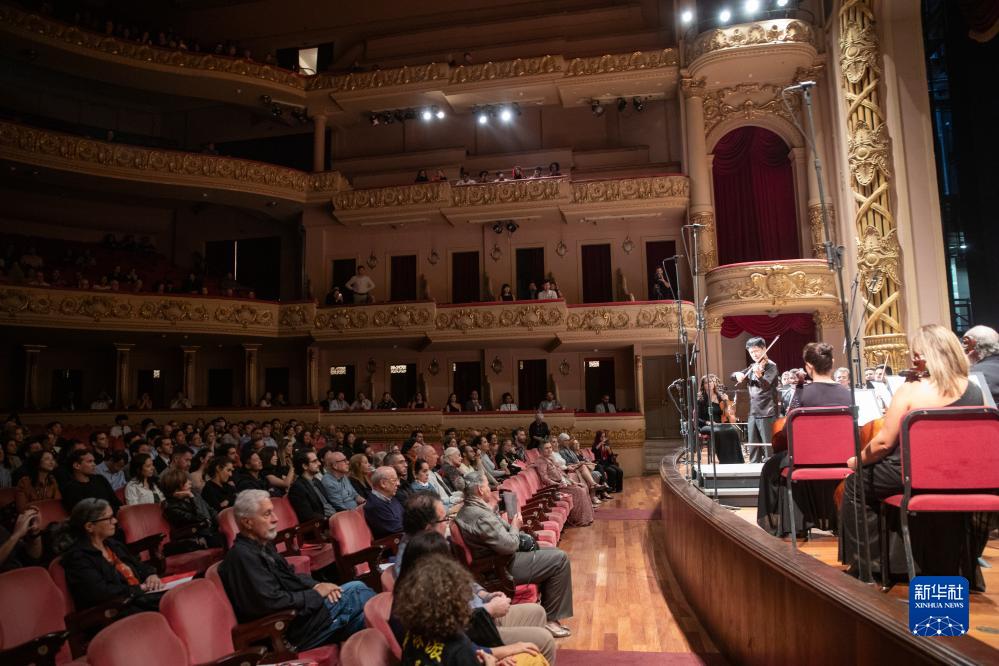 中国中央歌剧院交响乐团首席小提琴家杜玄当地时间28日晚在里约热内卢市立剧院与巴西交响乐团合作演奏中国经典小提琴协奏曲《梁祝》,向巴西民众展现了中国艺术与文化的魅力。