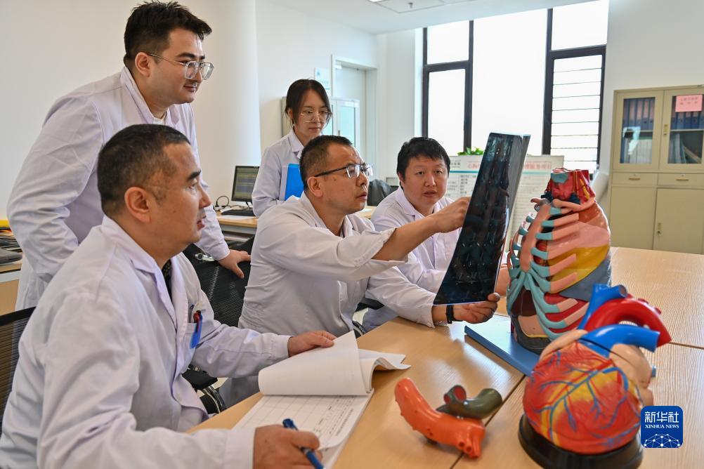 9月30日,在新疆乌鲁木齐市友谊医院,心胸外科的医生在讨论患者治疗方案。