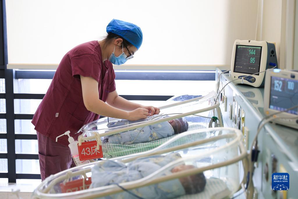 9月30日,在江苏省妇幼保健院,护士在护理新生儿。