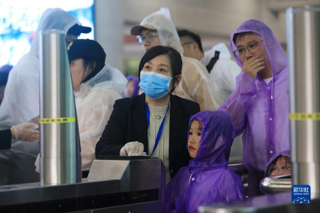 9月30日,在湖南张家界武陵源景区吴家峪门票站,工作人员引导游客“刷脸”入园。