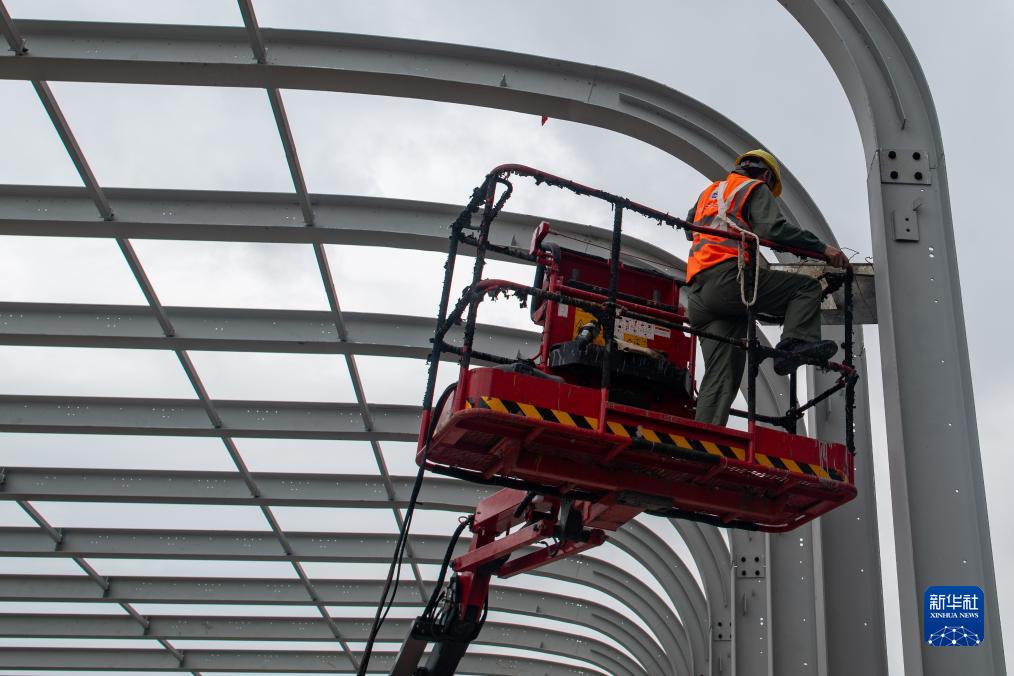 9月30日,在湖北省武汉市友谊大道快速化改造项目工地,中建三局三公司工人在进行声屏障安装作业。