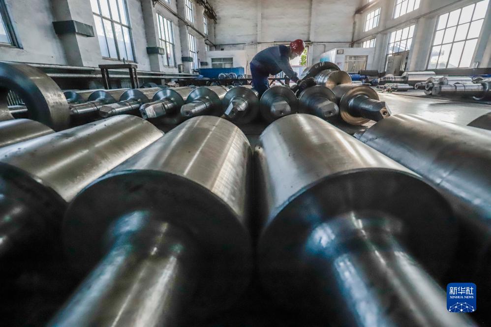 9月30日,工人在河北省遵化市西三里镇一家轧辊加工企业车间工作。