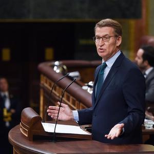 9月29日,在西班牙首都马德里,人民党领导人费霍在西班牙议会就其出任首相一事进行的第二轮投票会议上发言。