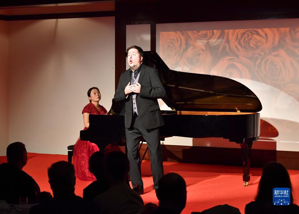 9月29日,在德国汉堡豫园,演员在中秋晚会上歌唱。