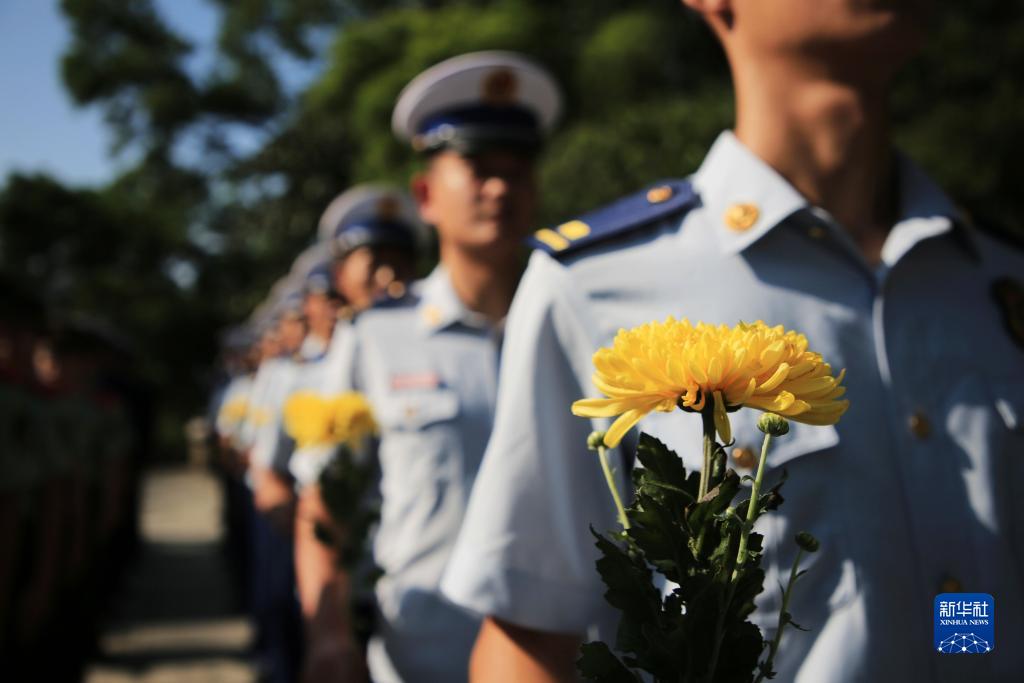9月30日,在福建省龙岩市闽西革命烈士陵园,消防员参加烈士纪念日活动,缅怀先烈。