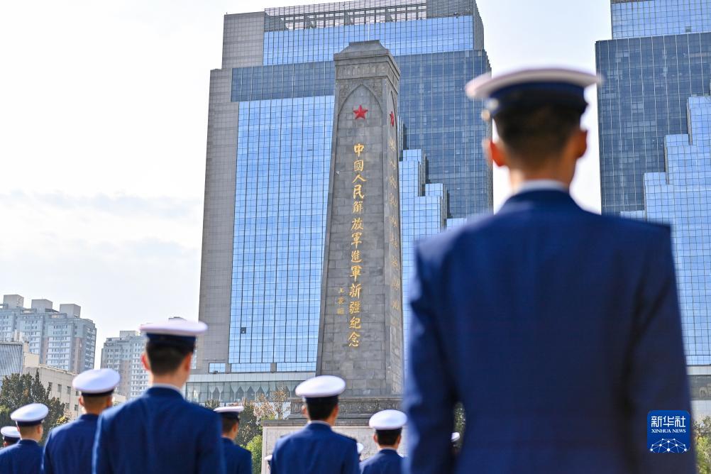 9月30日,在新疆乌鲁木齐市人民广场,社会各界群众参加纪念活动,缅怀先烈。