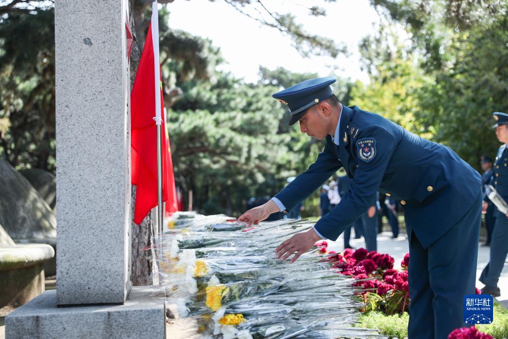 9月30日,在沈阳抗美援朝烈士陵园,解放军战士向烈士献花。