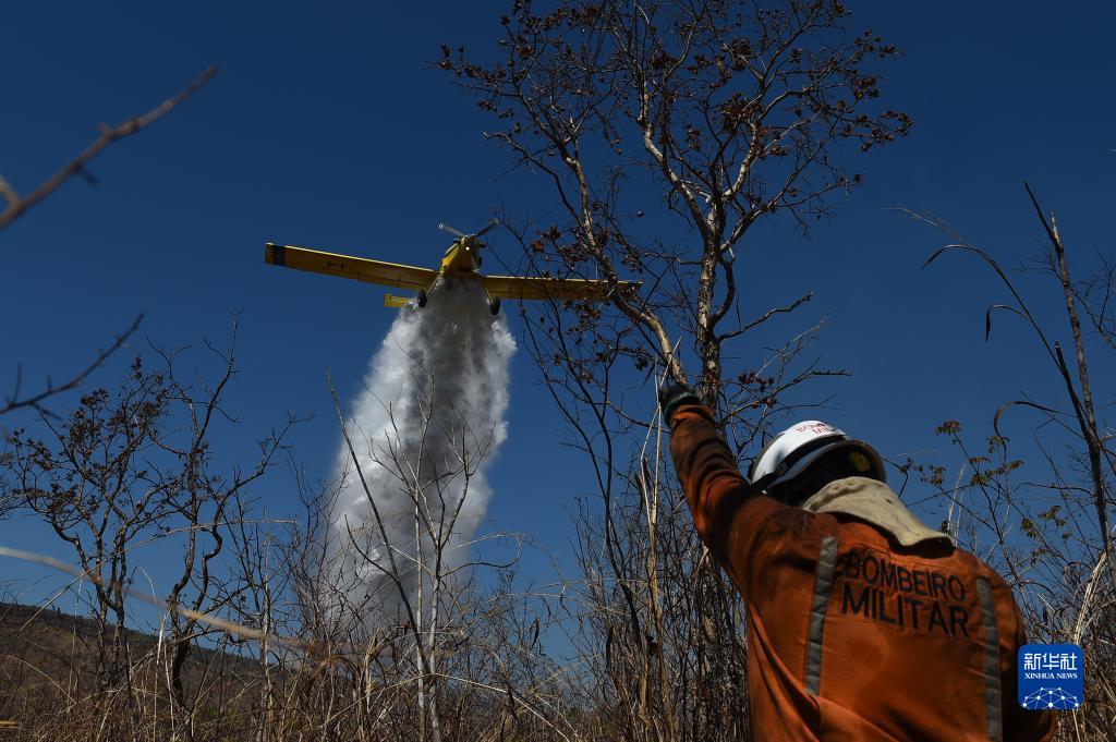 9月22日,一架飞机在巴西巴伊亚州里亚尚-达斯内维斯附近进行灭火作业。