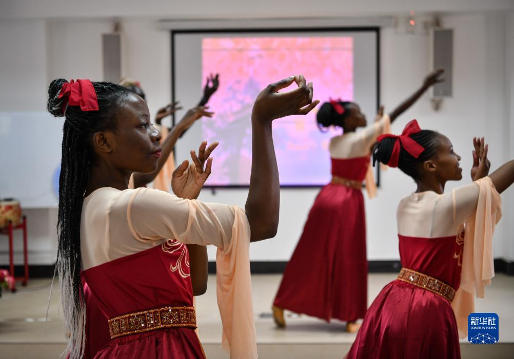9月28日,肯尼亚学生在内罗毕大学孔子学院举办的“诗剧颂中秋,中肯共月明”中秋庆典活动上表演中国传统舞蹈。