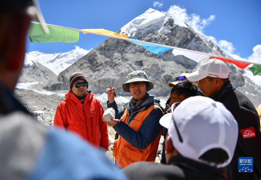 当前,第二次青藏科考卓奥友峰综合科学考察研究正在世界第六高峰卓奥友峰开展,科考队首次系统性采集卓奥友峰岩石样本。