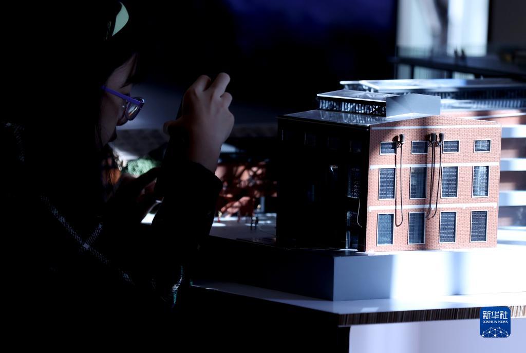 9月29日,在英国伦敦,一名女孩在“建筑当代中国”展览上拍摄建筑模型。
