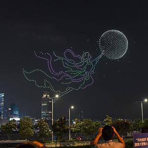 9月30日,1200架无人机从香港中环海滨腾空而起,伴随着流动的图案和变幻的造型,为“月来越好·欢乐湾区”无人机灯光秀表演揭开了序幕。表演通过矩阵飞行把科技与艺术完美结合,向人们传递着中秋、国庆的祝福。