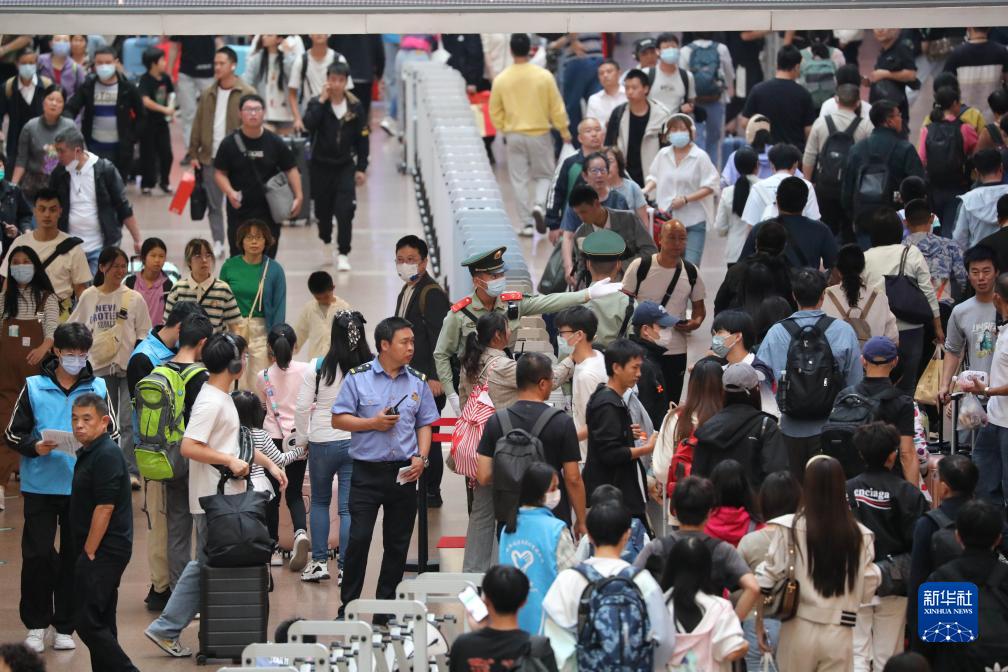 武警北京总队执勤第六支队官兵在北京西站候车厅为国庆假期出行的旅客指路(9月30日摄)。