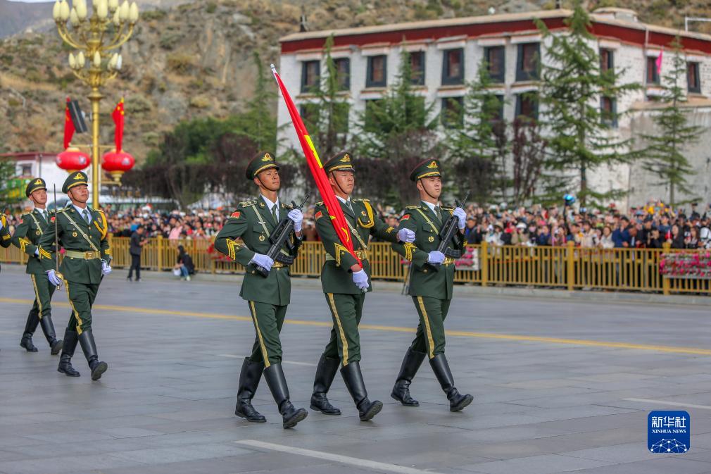 10月1日上午,西藏自治区庆祝中华人民共和国成立74周年“升国旗、唱国歌”仪式在拉萨布达拉宫广场举行。