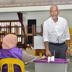 这是9月30日,穆伊祖在马尔代夫首都马累一处投票站投票。
