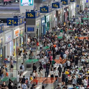 10月1日,上海虹桥火车站候车大厅里人头攒动。
