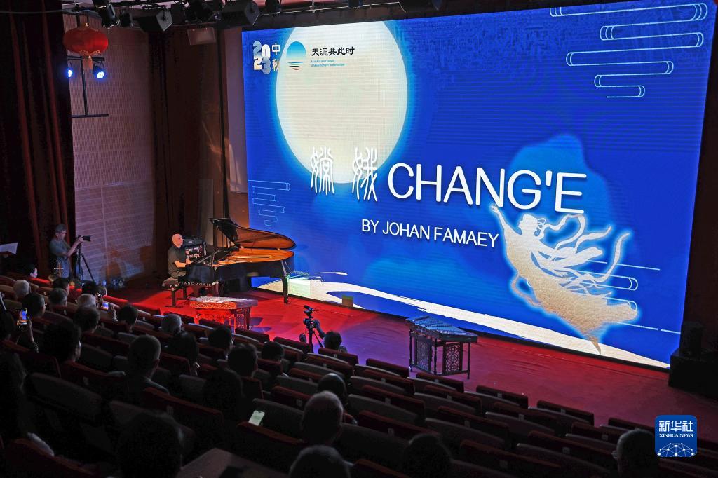 9月19日晚,人们在比利时布鲁塞尔中国文化中心观看“江南丝韵”中秋音乐会。