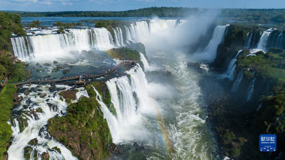 这是10月1日在巴西巴拉那州拍摄的伊瓜苏大瀑布(无人机照片)。