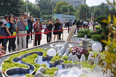 河北石家庄:园林“微景观”展为假期添彩
