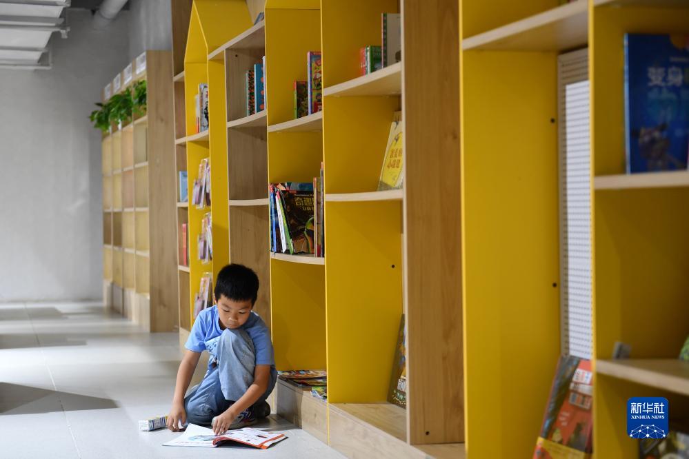 10月2日,小朋友在湖南长沙一家书店内阅读。