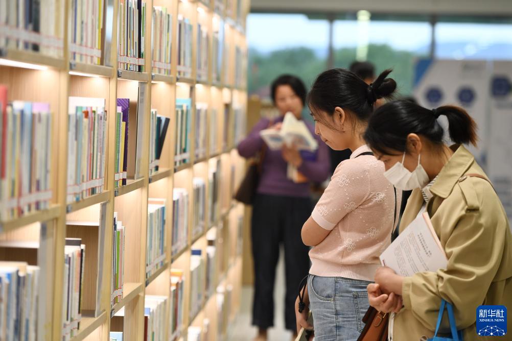 10月2日,读者在江苏南京江北新区图书馆借阅图书。