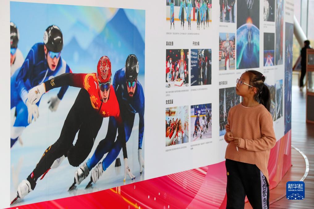 10月2日,小朋友在河北省张家口市崇礼区国家跳台滑雪中心“雪如意”顶峰俱乐部参观,品味冬奥文化。