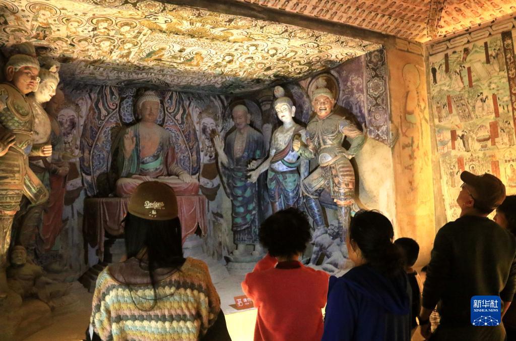 10月2日,游客在甘肃省敦煌市博物馆参观。