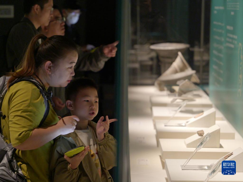 10月2日,小朋友和家长在郑州商都遗址博物院参观。