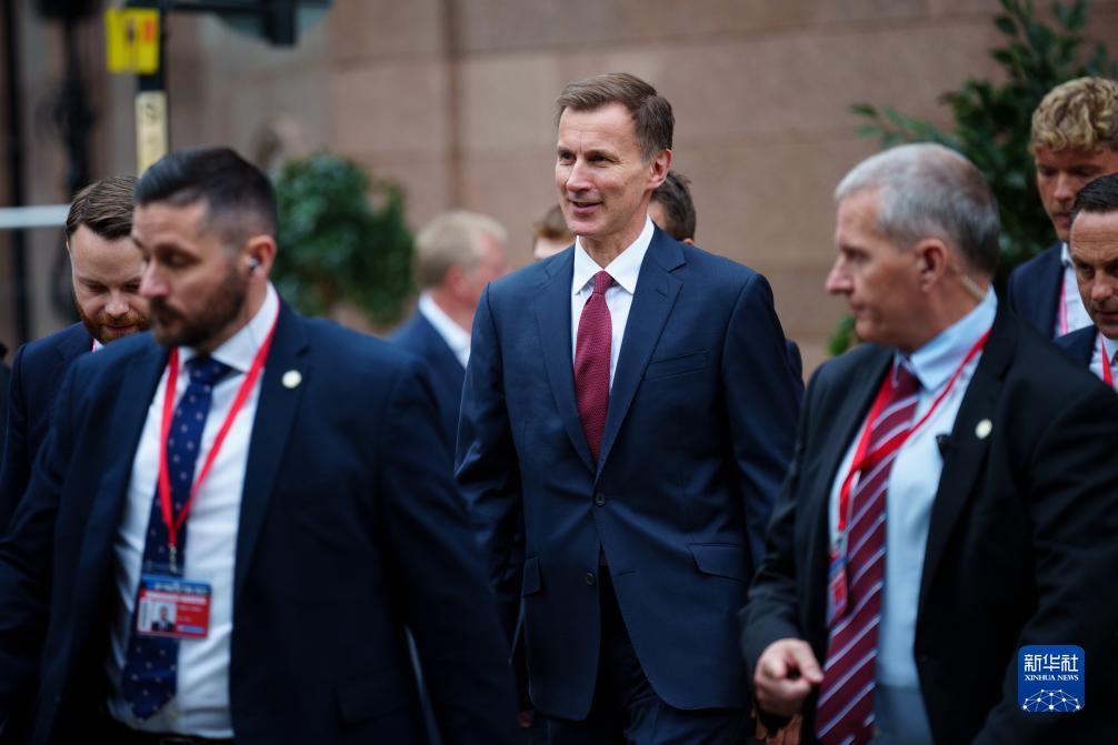 10月2日,在英国曼彻斯特,英国财政大臣杰里米·亨特(中)抵达保守党年度大会现场。