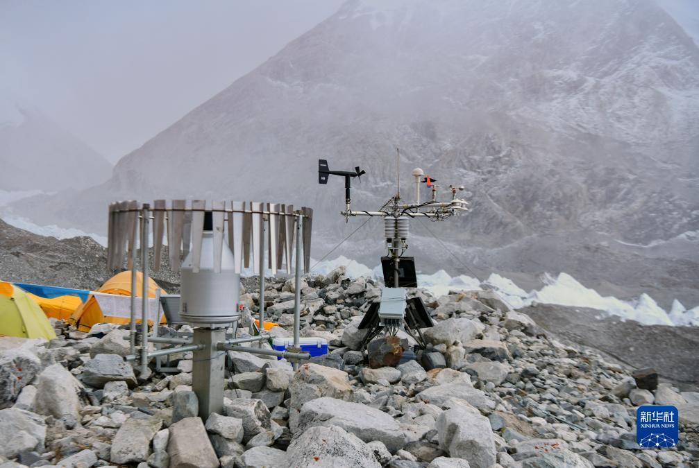位于海拔5700米卓奥友峰前进营地的自动气象站(9月29日摄)。
