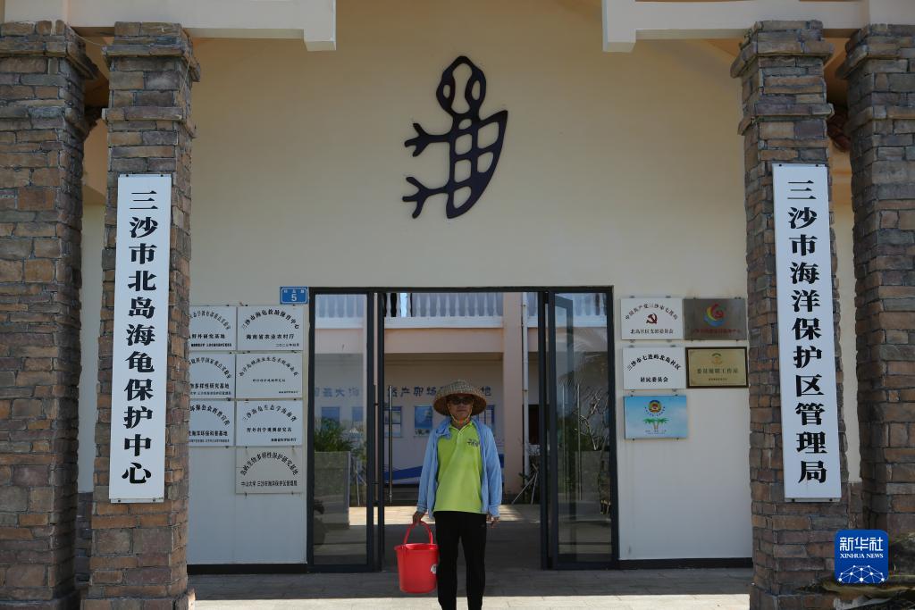 黄程是海南省三沙市七连屿管委会北岛社区居委会主任,也是北岛海龟的守护者。为了更好地守护海龟家园,他不仅要进行日常巡护、救助、登记等工作,还要定期清理海漂垃圾、种植固沙的羊角树等等。“岛礁生态好,海龟才会来产卵。”黄程说。