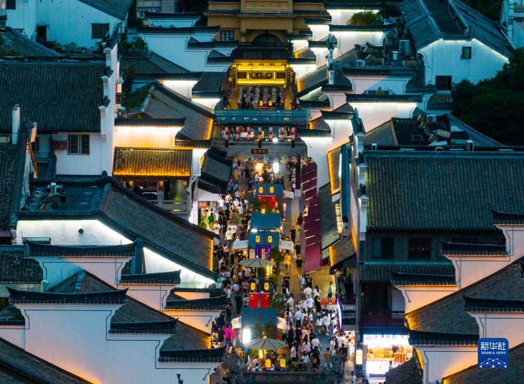 10月3日,游客在浙江省宁波市鼓楼步行街游玩(无人机照片)。