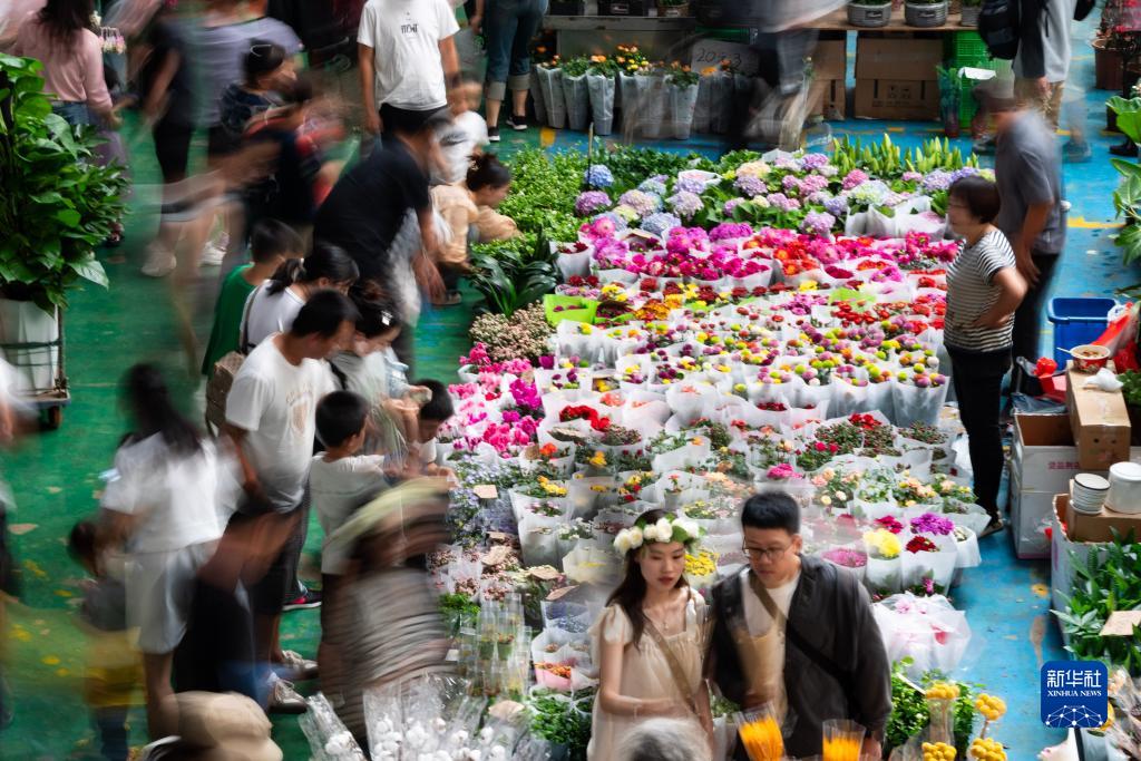 中秋国庆长假期间,不少市民游客前往云南省昆明市的斗南花卉市场选购鲜花。